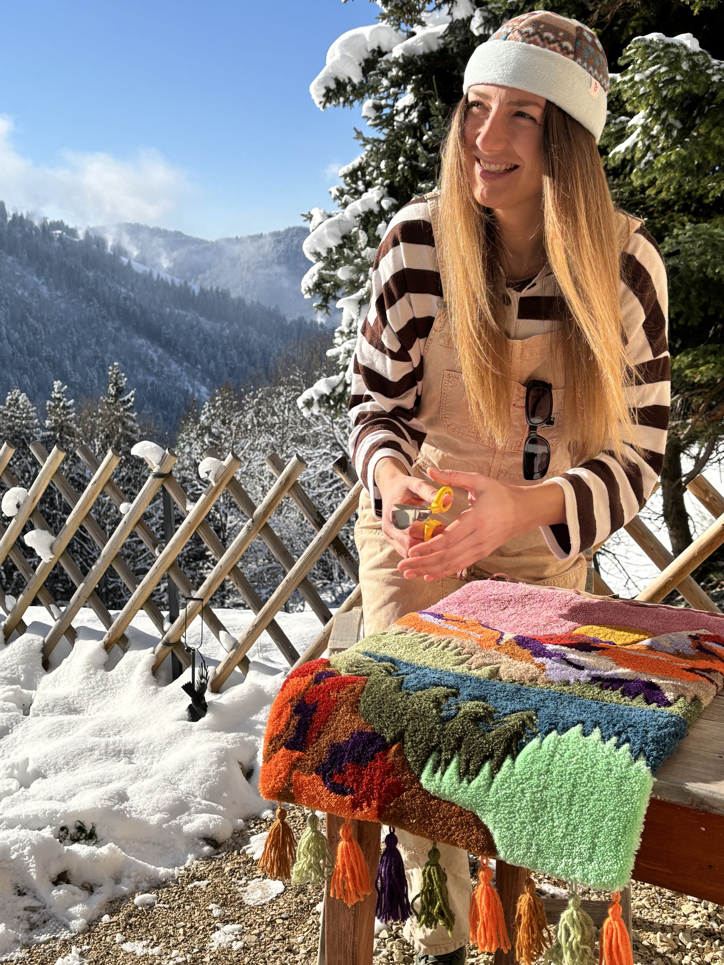 Je propose aussi des ateliers de créations en Haute-Savoie. Venez avec votre motivation, je me charge du reste! Le matériel est fourni et vous repartirez avec votre beau tapis.